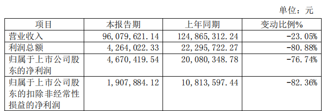 西磁科技(920061.BJ)近日披露2025年年度业绩快报公告。报告期内,公司实现营业收入为96,079,621.14元,较去年同期下降23.05%;归属于上市公司股东的净利润为4,670,419.54元,较去年同期下降76.74%;归属于上市公司股东的扣除非经常性损益的净利润为1,907,884.12元,较去年同期下降82.36%。
