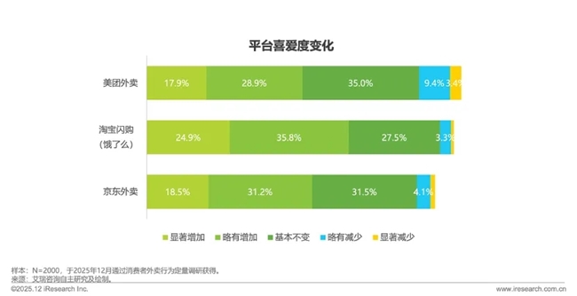 喜爱度数据的反转是用户从惯性到认可平台的关键信号。调研显示,与2024年相比,2025年消费者对淘宝闪购的喜爱度占比显著增加居于高位达24.9%,紧随其后的是京东外卖排名居于第二位,喜爱度占比18.5%,最后美团喜爱度占比17.9%。上述数据表明用户不再单纯依赖单一老牌平台,而是青睐多平台提供的丰富度和差异化服务。