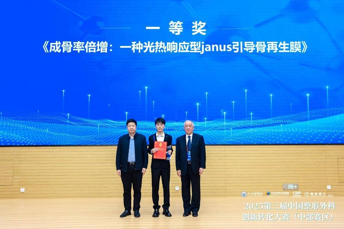一等奖:《成骨率倍增:一种光热响应型janus引导骨再生膜》;颁奖嘉宾:祁佐良、何建涛