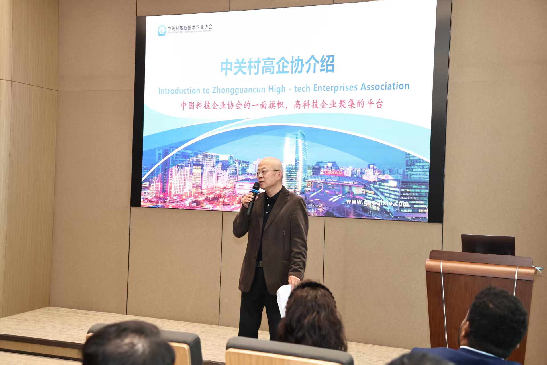 活动在协会会长曹毅的致辞中拉开帷幕。曹毅指出,埃塞俄比亚作为非洲经济增长最快的国家之一,其市场需求与中关村企业的技术优势高度契合。协会将充分发挥平台作用,为企业提供政策对接、资源整合等全方位支持,助力企业稳健开拓非洲市场。副会长郭海涛进一步介绍了协会的服务体系,强调将通过“中关村科创企业家俱乐部”等品牌活动,持续推动产学研用深度融合。