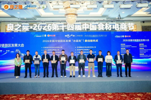 在同期举办的2026全国冷链园区发展大会上,华鼎冷链科技凭借专业的服务能力和科技实力,获2026全国冷链园区发展“冰晶奖”最佳服务奖。