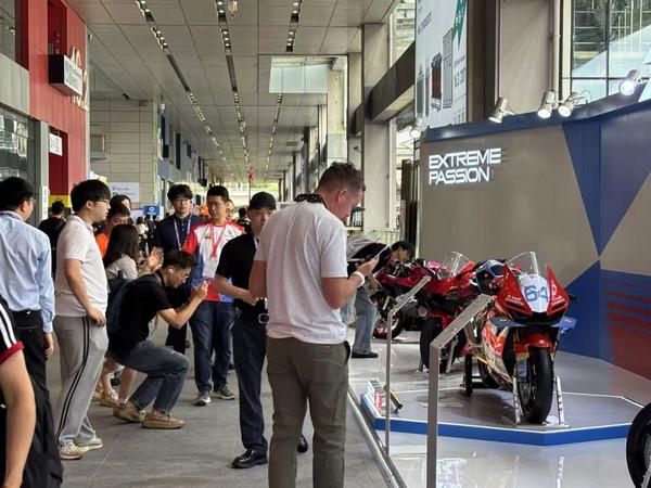 来自重庆的张雪机车首次亮相广交会。在上月举行的世界超级摩托车锦标赛(WSBK)中量级赛事(葡萄牙站)中,法国车手Valentin Debise驾驶张雪机车(编号53)820RR-RS车型,连续两次夺冠,实现了中国摩托车品牌在该项顶级赛事中的历史性突破。“一冠封神”让张雪机车名扬天下。