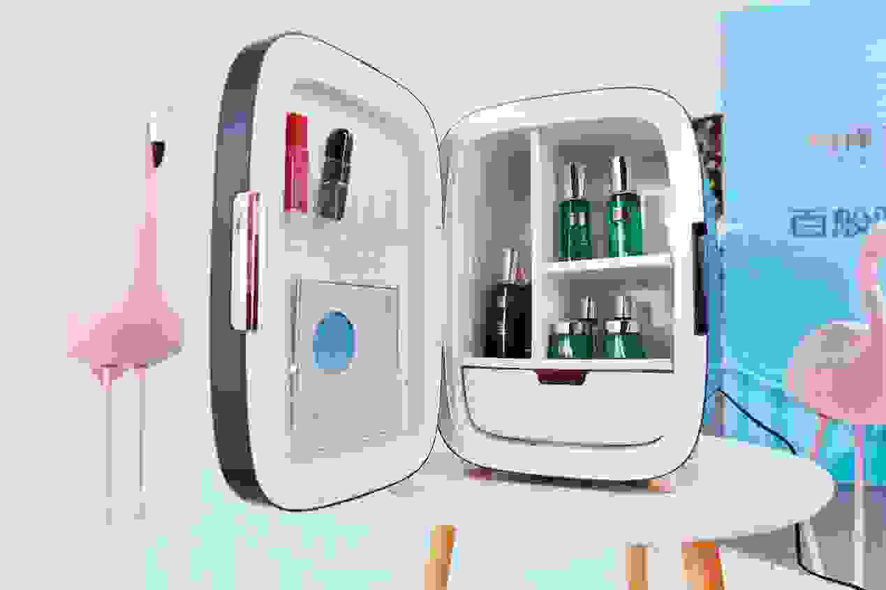有了这款充满新意的面膜,当然要有与之匹配的存储设备。众所周知,现在市面上的冰箱功能都只在食材存储上,但在生活中却有很多小仙女会用厨房冰箱存放自己的化妆品,然而低温、串味、潮湿等特点,都不适合我们护肤品的储存,这时候消费者一定在想如果要是有一款能够专门储存护肤品的冰箱就好了,所以容声美妆冰箱——美妆元气舱,也在本次发布会上闪亮登场。