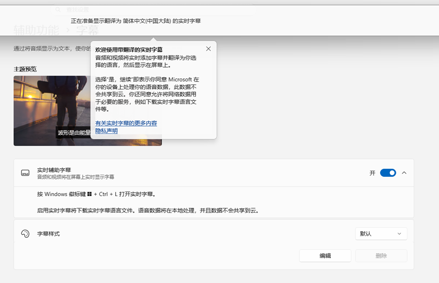 二)带翻译功能的实时字幕(Live Caption)