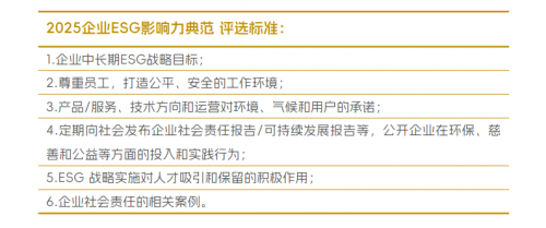 作为前程无忧2025典范雇主单项奖中最受关注、竞争最为激烈的奖项之一,企业“ESG影响力典范奖”含金量可见一斑。该奖项是对企业在可持续发展战略的前瞻布局与深度投入的高度认可,同时也集中展现了企业主动承担社会责任及非常重视员工福祉与成长的优良实践。随着商业环境对高质量发展与社会责任的期待不断提升,ESG影响力典范奖已成为衡量企业长期价值观、社会贡献和雇主关怀的重要标杆,也是企业打造卓越雇主品牌和实现可持续发展的权威证明。