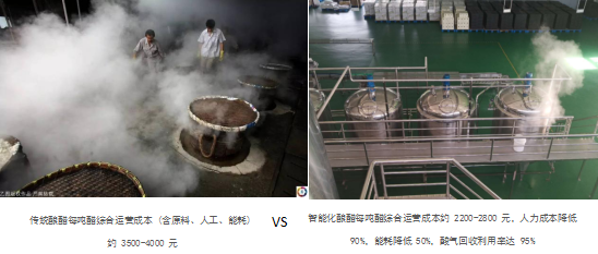 艾恩伦特智能酿造食醋生产线通过智能化控制、封闭式发酵、立体布局三大核心技术革新,在年产 8000 吨规模下实现了生产效率提升 5 倍、占地面积减少 75%、人力成本降低 90%、原料利用率提升 30%、运营成本降低 30%-40%的显著优势,同时保障产品质量稳定性与风味物质提升,是食醋产业向工业化、绿色化、智能化转型的关键技术路径。