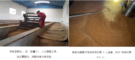 从工艺原理来看,传统固态发酵食醋生产线采用开放式自然发酵模式,依赖环境微生物与传统大曲,多环节以手工 / 半机械化操作为主;艾恩伦特智能酿造生产线采用封闭式智能固态发酵体系,融合 23 项国家专利技术实现原料投放至淋醋出渣全闭环操作,无需淋醋池、熏醅机等辅助设备,从根源上摆脱自然条件对生产的限制。