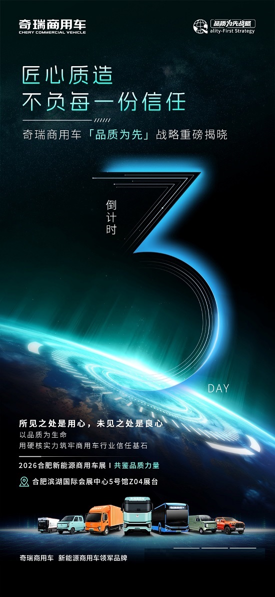 提要:3月27日,2026中国(合肥)新能源商用车展览会将在合肥滨湖国际会展中心启幕。届时,奇瑞商用车全系产品矩阵全面集结,众多春季新品也将首度登场,接受物流行业及用户检阅。但比新车更值得期待的,是三个问题即将揭晓答案。
