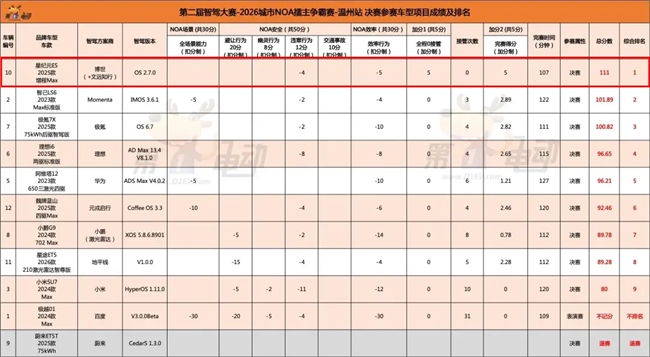 自2025年11月在台州站首次夺冠以来,文远知行凭借一段式端到端AI大模型的持续稳定表现,成为大赛关注焦点。台州站中,文远知行赋能的星纪元ES以全场唯一零接管、112.81分的成绩夺冠,展现出卓越的系统可靠性与泛化能力。两个月后的温州站,星纪元ES再次凭借同一方案稳健登顶,进一步验证了该方案在不同城市道路环境中的稳定表现。而在刚刚结束的金华站中,文远知行赋能的星纪元ET首次参赛即拿下冠军,使文远知行成为中国智驾大赛史上迄今为止唯一实现“三连冠”的L2辅助驾驶解决方案商。