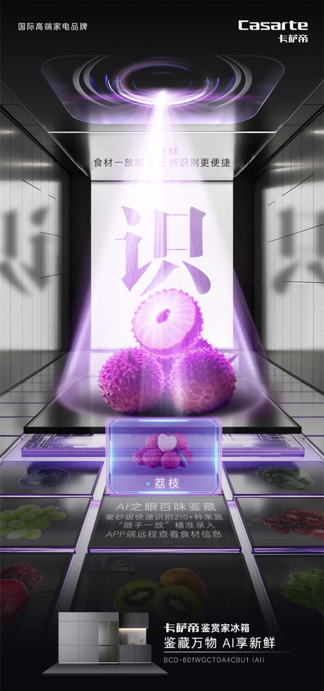 如今,卡萨帝冰箱进一步突破硬件局限,通过AI赋能成为厨房智慧中枢。搭载“AI之眼”的冰箱可以主动识别230多种常见食材,为他们匹配最佳储鲜环境,还能根据用户个性化需求生成专属膳食方案。同时冰箱还能与厨电、冰吧、酒柜实现互联互通,覆盖从存储、烹饪到餐饮搭配的全流程健康饮食体验。