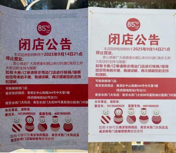 记者致电85度C南京一家暂未闭店的门店。店员称,已知晓南京新街口等店关闭的消息,主要原因是租金过高且租约到期,且新街口对面的小吃街也对生意造成了一定影响。工作人员还透露,公司目前正在南京寻找新址,计划开设新店。关于储值卡等事宜,各门店间已完成交接。消费者需保留好消费凭证,如有任何问题,可前往门店解决。