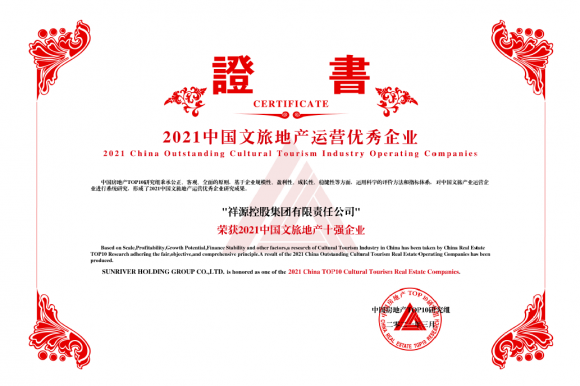 3月18日,《2021中国房地产百强企业研究成果》发布,祥源控股集团斩获 “2021中国文旅地产十强企业”奖项,这是祥源继2020年入选后,再度上榜,同时排名提升至第五。