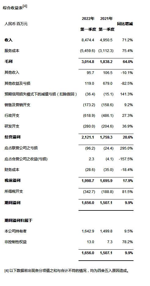 | [3] 如果在PRC准则下核算,毛利同比增长65.1%至30.33亿元,毛利率为35.8% |