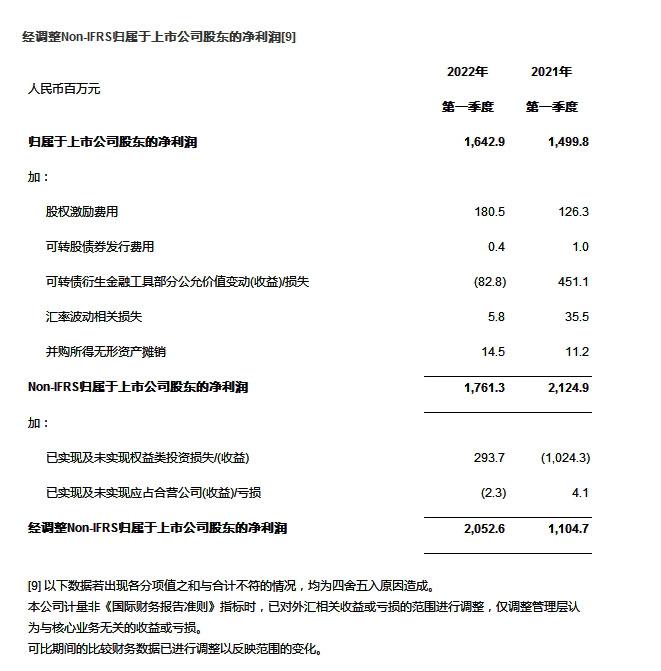经调整[1]Non-IFRS归母净利润20.53亿元,同比增长85.8%