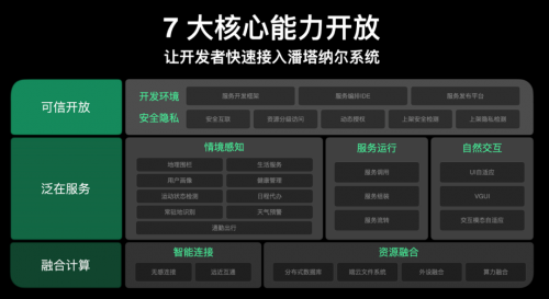 潘塔纳尔对于开发者来说,融合计算、泛在服务与“中间件”的打通,以及7大核心能力开放,意味着“用一个系统打通多个系统”的时代终于来临,开发者一个相同应用不用付出高成本与精力去适配多个平台生态,可以更加专注于应用本身的创新,同时还可以实现“一点开发、多平台适配,海量IoT终端和用户触达”,从而大幅提升开发效率与用户转化率。