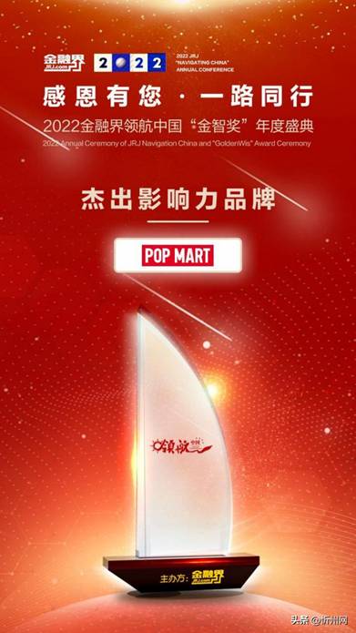- 泡泡玛特荣获金融界领航中国“杰出影响力品牌奖” 品牌价值受到市场认可