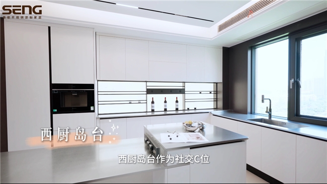 社交厨房的每一处细节设计,都围绕着“舒适互动”的核心需求展开。当代年轻人让烹饪变成了一项集体活动,让相聚的时光更加温馨。不锈钢材质所具备的“耐造”特性,反而营造出更加自由、亲密的社交空间,成为“长久陪伴”的情感诉求的物质载体。