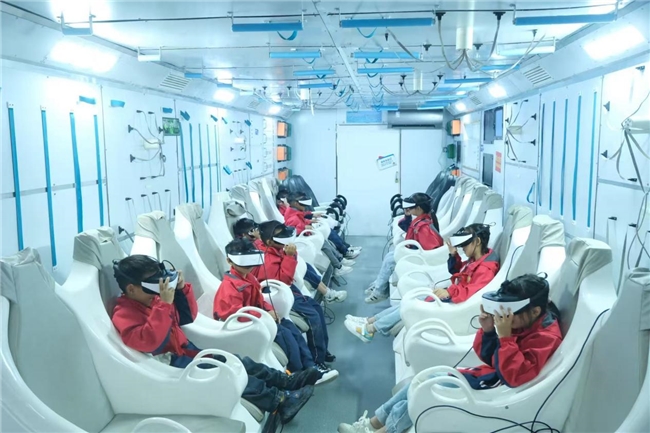 在猎鹰教育基地航天航空科技展馆,VR技术将红色教育推向多维时空。戴上头显设备,五年级学生陈宇航置身“天和核心舱”,透过舷窗俯瞰地球弧线时脱口而出:“当年红军翻越乌蒙山,现在我们在太空守护祖国!”这种“从长征路到飞天路”的意象连接,正是课程设计团队的匠心所在。VR跳伞模拟器还原了空降兵训练场景,第二小学学生在失重体验中领悟军人血性;沉浸式飞行影院里,《长征组歌》交响乐与4D动感座椅协同运作,让红军四渡赤水的历史图景直击心灵。基地负责人朱教官介绍:“我们运用19项数字技术,让革命精神可感知、可交互,青少年认知留存率提升40%。”