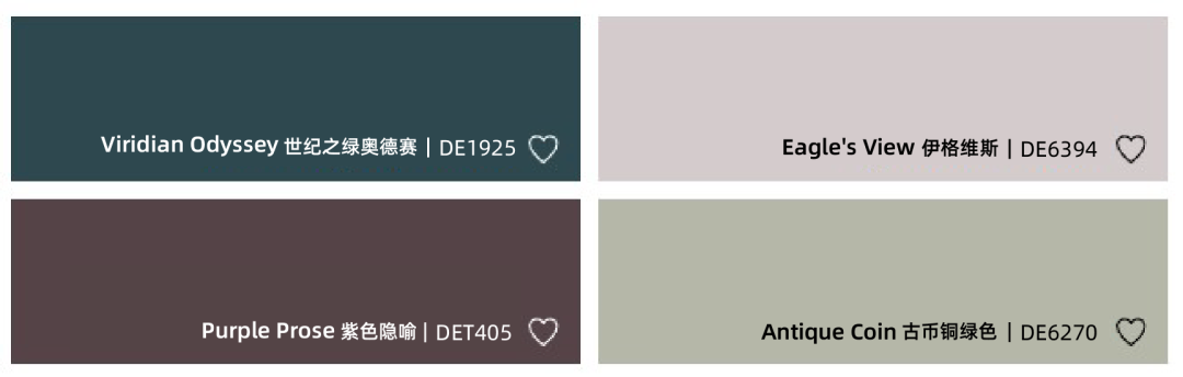 我们的世纪之色——世纪之绿奥德赛 Viridian Odyssey(DE1925)是一种深邃神秘的蓝绿色,散发着宁静而优雅的气息。这种颜色让人联想到穿越时光的旅程、海洋的镇定气质,以及完美日落后的静谧,完美融合了过去和未来。 世纪之绿奥德赛堪称营造戏剧化沉浸空间的完美之选。无论是为餐厅注入浓郁色彩营造私密奢华氛围,还是装点影音室墙面提升观影体验,都能完美适配。这种色彩同样适合用作现代风格建筑的深色外立面或前门装饰。无论何种应用场景,它都能为深度联结与静思冥想创造舞台,成为故事发生地与未来想象空间的完美载体。这百年一遇的颜色标志着邓恩-爱德华兹历史上的一个重要里程碑,也是自 1925年以来我们所走过的旅程的见证。