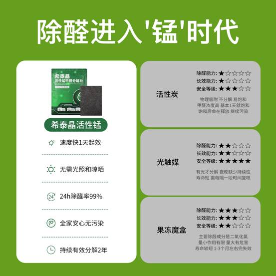 新科技改变新生活,新一代希泰晶活性锰甲醛分解片。