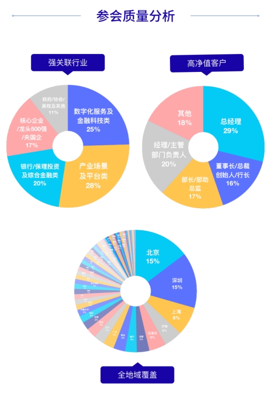 本次大会我们将汇聚300多位来自产业供应链领域的央国企、龙头企业、产业集团、大中型制造企业、产业互联网平台/工业互联网平台、金融机构等企业的高管精英,根据往期数据分析,现场参会的企业管理层高达82%,便于直接沟通业务合作,快速找到关键决策人。
