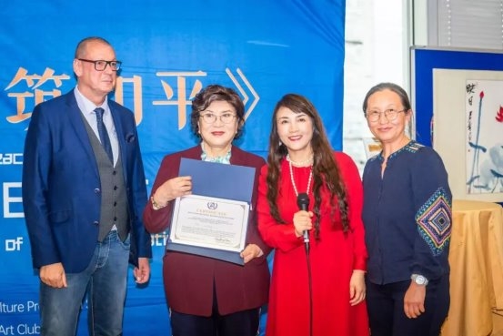 在现场捐赠仪式上,中欧艺术家代表将多件作品赠予联合国妇女联合会艺术委员会(UNWG Arts Committee)。该委员会周瑞卿女士表示:“这些作品不仅是艺术的礼物,更是一份跨越语言与国界的和平宣言,将永远珍藏于联合国艺术史册。”