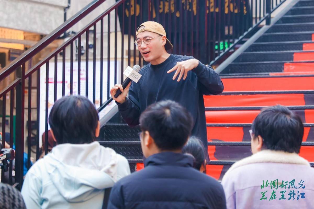 双鸭山文旅推介官围绕友谊县冰上运动中心、冬泳冬钓邀请赛、冰雪嘉年华等冬季项目展开推介,邀约游客亲身体验冰雪运动的激情与欢乐,一曲《松花江上》为现场市民游客营造出身临其境的视听体验。