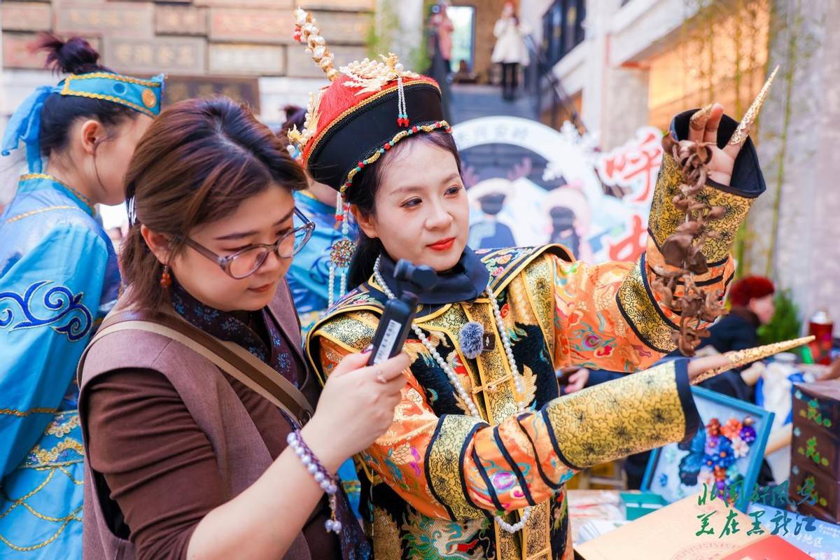 黑河的展位则带来了极具边境特色的文创产品与特产,黑河爱辉区的满族剪纸技艺展品、文创冰箱贴和农特产品琳琅满目,蓝莓果干、蔓越莓果干等试吃产品果香浓郁,赢得市民连连称赞。