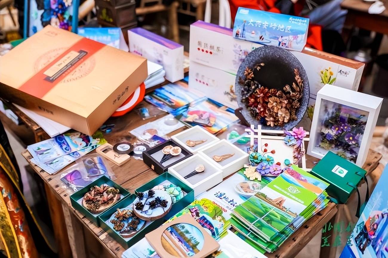 大兴安岭松岭区的根雕产品、桦树皮画和市级非遗手工煎饼、野生蓝莓果干、果糖等试吃产品吸引众多游客;加格达奇的掐丝珐琅系列文创、沁岭瓷板画和当地文旅吉祥物展品精美别致;呼中区则带来了偃松仁、烙画、版画等特色产品,充分展现龙江林区特色与文化创意。