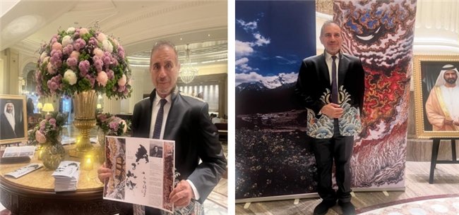 余涵宇先生的画展,恰逢全球CEO Club 也在迪拜Al Habtoor 皇宫酒店举行年会, 来自全球500 名CEO齐聚迪拜阿尔哈布托Al Habtoor 皇宫酒店,荣获企业界的“奥斯卡”。 不少CEO 朋友不断来到画展现场- 其实就是整个酒店, 拍照留念。 世界面临一个新的发展、 文化作为生产力, 正在徐徐展开。 笔者不禁想到去年此时和吉尼利来迪拜拜见Al Habtoor先生时, 面对着Habtoor集团正在酒店对过打造的另一座超高塔楼, 他说了一句话让我很难忘: 只要和中国合作、只要和中国人合作, 没有办不到的事。
