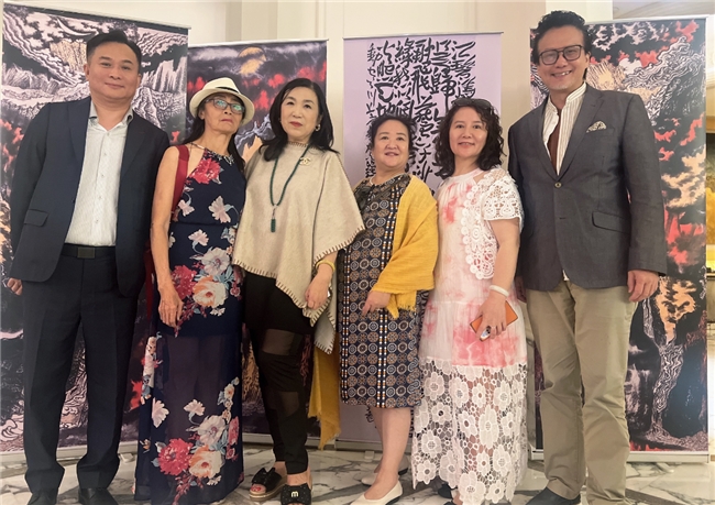 画展特别邀请到余涵宇老师的挚友——胡树田先生从中国深圳赶到现场。胡总长期关注余老师的创作,也深耕跨文化交流领域。 在接受现场央视记者上官的采访时, 胡总从一位艺术家和企业家的视角, 很深层次地谈文化艺术与跨国合作, 提出好几个非常实际的问题: 在跨国合作中艺术最核心的作用是什么?大家在与中东伙伴打交道的过程中,是否有过“文化共鸣带来合作突破”的经历?哪些中国文化元素最容易引发中东伙伴的兴趣?我们的文化项目, 如何将“文化赋能”融入商业布局?在高端地产、数字经济、融资上市等领域,文化如何成为吸引资本、赢得信任的“加分项”?