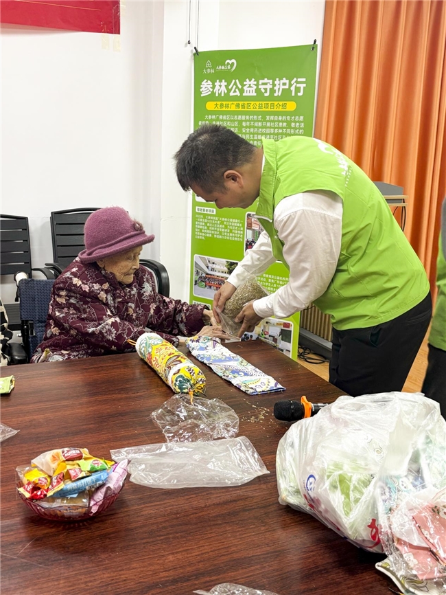情暖夕阳,公益同行。大参林医药集团股份有限公司携手三水区慈善会于12月19日走进三水区大塘敬老院举办“大参林敬老爱老系列活动”, 开展健康检测、慢病科普小课堂、与长者一起制作中药养生枕等,用实际行动诠释 “尊老敬老” 的传统美德,让敬老院的冬日洋溢着浓浓暖意。据统计,大参林《敬老爱老》系列活动已经开展到35期,服务超过1900名长者,始终以“志愿+专业服务” 为核心模式,将健康与关怀送到长者身边。