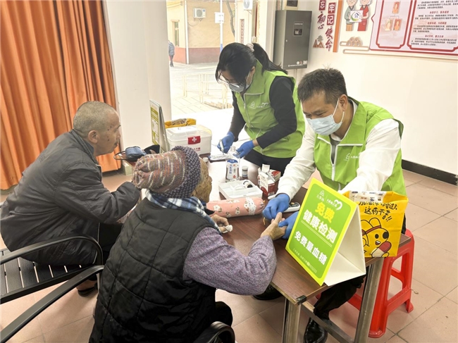 (图片说明:大参林志愿者为大塘敬老院长者开展健康检测服务)
