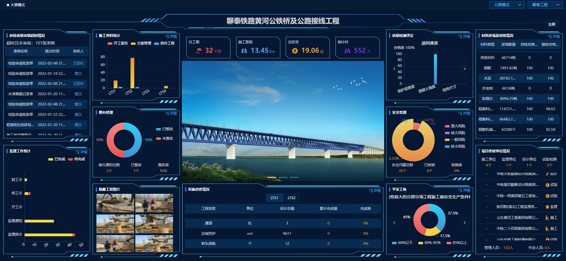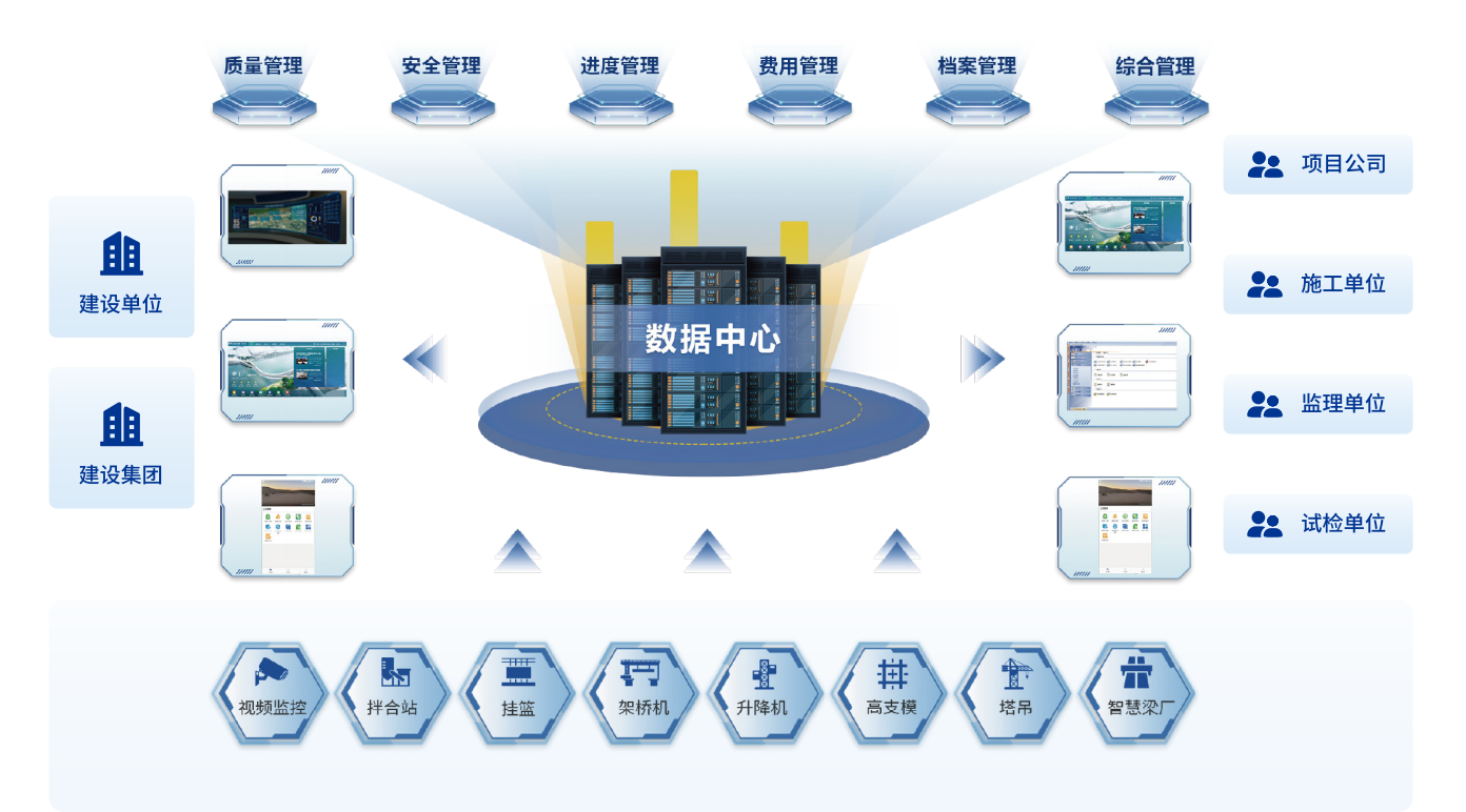 平台将业主、设计、施工、监理、检测等参建各方紧密联系,实现项目建设全过程质量、安全、进度、费用、合同、档案等全业务高度融合协同管控。