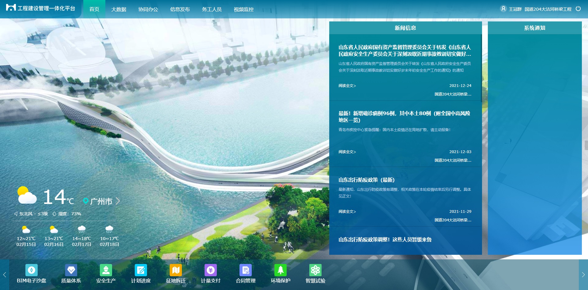 国道204大沽河桥梁工程全面应用微柏软件基于BIM+GIS的工程建设管理一体化平台。微柏软件为项目提供全过程技术支持服务,根据工程建设需求,通过数字化、信息化、可视化的手段,充分利用BIM+GIS+IoT等技术应用,实现全域数据的可视、可管、可控,大幅提升项目信息化管理水平,推动建设项目实现精准管控、智慧决策,数字赋能。