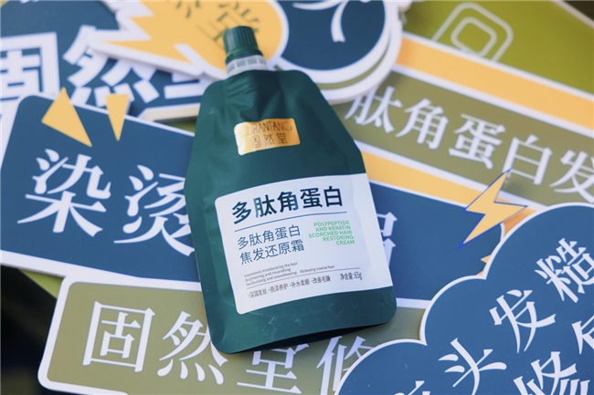 现场受到关注的主推产品,是定位为 “发膜Plus” 的固然堂多肽角蛋白焦发还原霜。它的核心成分是角蛋白,主打 "固本养润" 功效,能快速改善烫染受损、毛躁干枯等发质问题。现场通过扫码关注,还可领取产品小样,让更多消费者体验感受固然堂的产品效果。