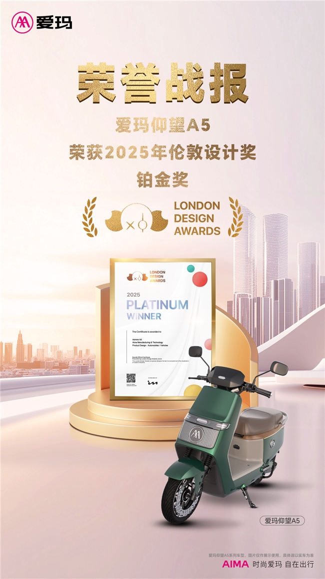 提要:2025年末至2026开年,电动两轮车出行头部品牌爱玛迎来荣誉丰收季。从爱玛仰望A5问鼎2025年度伦敦国际设计奖铂金奖,到爱玛马赫S1pro摘得DoNews2025年灵锋奖优秀产品奖,从2026造浪者大会暨瑞丽30周年时光礼赞之夜斩获“2025芳心之选——中国女性青睐电动车”大奖,再到iiMedia Research(艾媒咨询)授予爱玛“休闲电动三轮车开创者”市场地位确认,多项跨领域大奖的加持,不仅彰显了爱玛在产品设计、市场适配等维度的硬实力,更印证了其多人群、多场景产品布局的前瞻性。