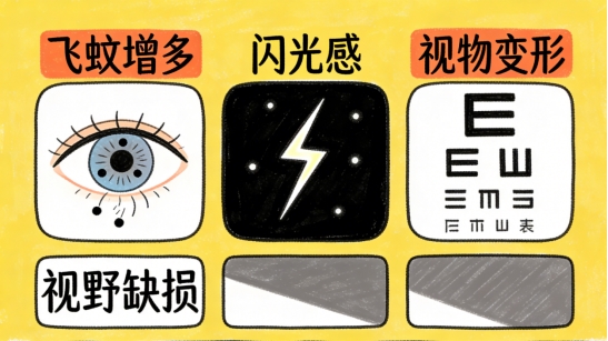 ▸ 眼前突然出现大量黑影飘动,类似“蚊虫飞舞”;
