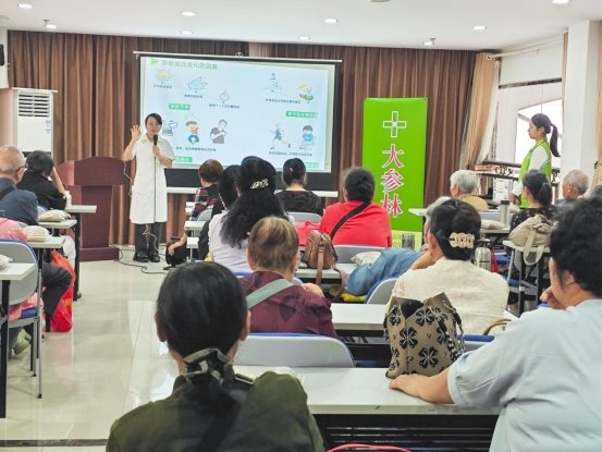 (图片说明:大参林志愿者为社区长者开展慢病健康小课堂)