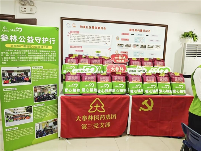 (图片说明:大参林开展健康检测服务并送上爱心物资一批)