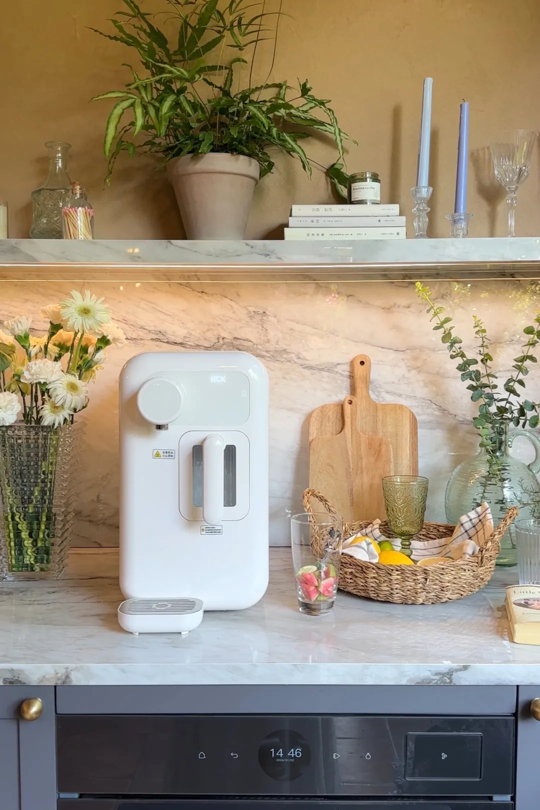 热冰冰饮水机则实现了一机多用,既能8分钟制冰、提供5℃冰水,又能满足90℃手冲咖啡、85℃花茶的多样水温需求,搭配便携式咖啡机,让客人在房间内就能轻松复刻专业级咖啡吧体验。