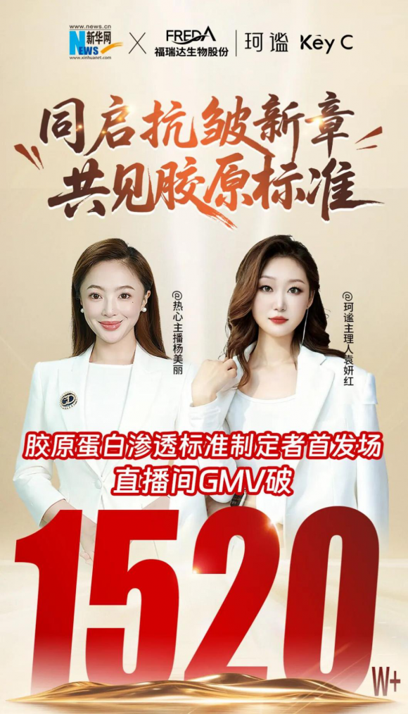 珂谧的爆发式增长,离不开福瑞达生物股份深厚的“妆药同源”科研底蕴与全产业链支撑。2023年12月,福瑞达生物股份重组胶原蛋白生产线正式投产,顺势推出珂谧品牌;2025年4月,福瑞达生物股份实现穿膜胶原技术突破,发布珂谧穿膜胶原新品,渗透率提升27.5倍,打破传统胶原大分子透皮难题;2025年9月,珂谧凭借强大的产品力亮相新华网直播间,创造单场GMV1500万的亮相业绩,品牌成功破圈。