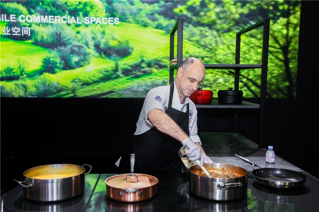 围绕“灵感&乐趣”的主题表达,品牌特邀知名厨师与明星调酒师现场呈现,将模块化移动家具的多场景适配能力,与创意餐饮体验自然融合。观众既可近距离交流空间设计与运营思路,也能在味觉与视觉的交织体验中,直观感受产品在运营场景中的效率与乐趣。