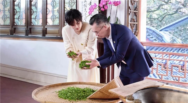 △国家级非遗传承人、八马茶业董事长王文礼带领八马茶业品牌大使姚安娜茶叙体验炒茶