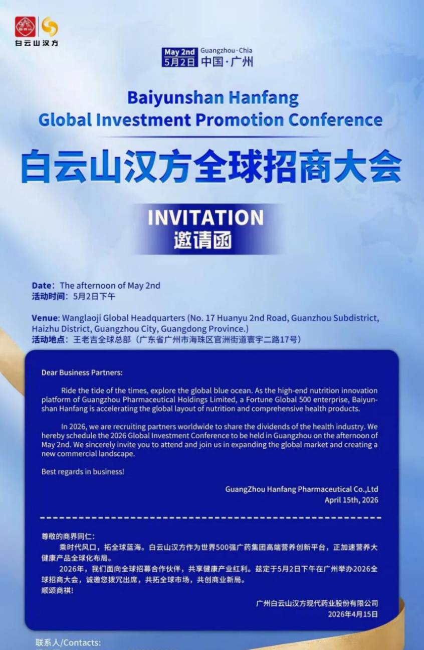 - 广药白云山汉方全球招商大会诚邀全球客商共赴盛会