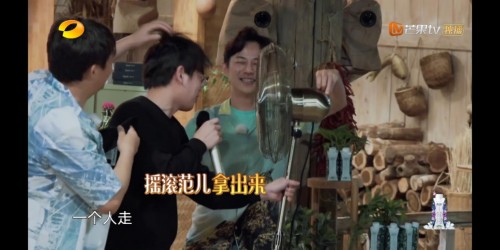 而提议欢歌的黄小厨老师,直接将厨房内的鼓风机拿出来助兴,吹得发际线男孩的造型再度飘逸起来,欢欢闹闹的气氛更让人心生向往!