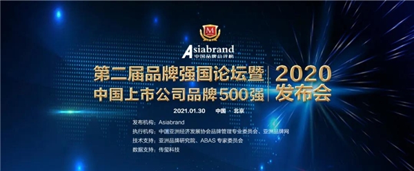 由专业品牌价值评价机构Asiabrand发起主办的“第二届品牌强国论坛暨2020中国上市公司品牌500强发布会”已正式启动,将于1月30日在北京重磅发布。