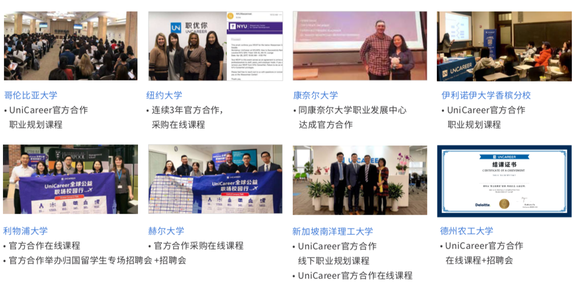 UniCareer(职优你)在后疫情时代,将会持续为全球大学生就业提供支持和帮助,作为行业内官方合作全球Career Center以及就业辅导中心最多的机构之一,UniCareer(职优你)将会不忘初心,坚持“产教融合“的颠覆愿景以及”学员为先“的使命,持续提供优质的内容以及服务。
