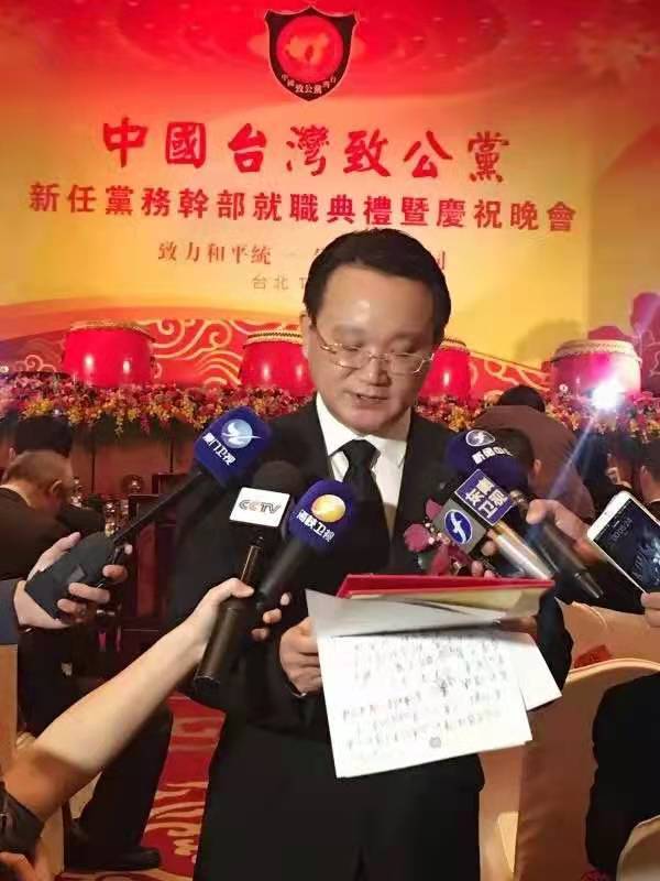 2015年12月13日,接任台湾第98号政党中国台湾致公党主席,2017年12月16日更名为中华民族致公党,面对复杂的台湾政治局面,表明支持九二共识,一个中国的立场,并将“致力中国和平统一”的主张纳入了中华民族致公党的党章之中,是台湾最重要的反台独政党之一,举全党之力投入国家统一、民族复兴的工作。