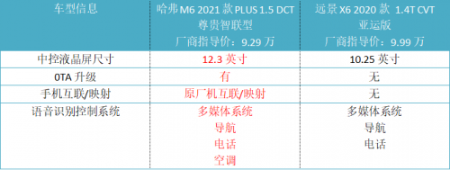 对比完车型外观和内部空间,接下来就是和实用性挂钩的配置部分了。哈弗M6 PLUS作为一款定位为“新超值家用SUV”的车型,对内部诸多配置进行了升级,即便是入门车型,都配有远近光LED大灯、电子手刹、自动驻车、自动空调等。而远景X6仅搭配卤素灯源,更是缺乏其他车内配置。
